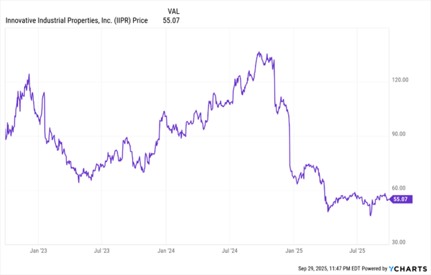 My favorite cannabis play was Innovative Industrial Properties Inc. (IIPR). Its strategy was pretty brilliant. Cannabis companies could not get bank loans, so IIPR stepped in with a niche business model. A company would buy land, sell it to IIPR, and then lease it back on a long-term contract. The cannabis company freed up cash and had a locked in lease, IIPR had a real estate business, and income investors enjoyed the fat payments from the REIT structure.
