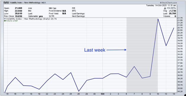 One side effect of last week’s market dive was the VIX jumped to over 20!
