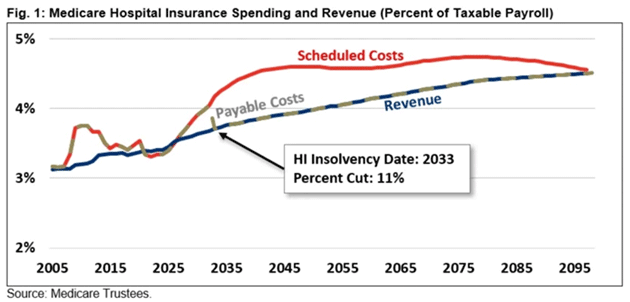 This is an expensive group. As of August, the Committee for a Responsible Federal Budget projected Social Security insolvency by late 2032—just seven years from now. It’s also projected Medicare Part A (hospital care) will become insolvent just one year later.